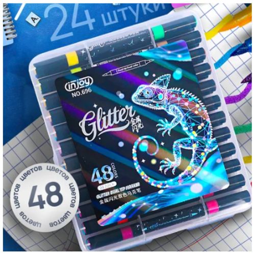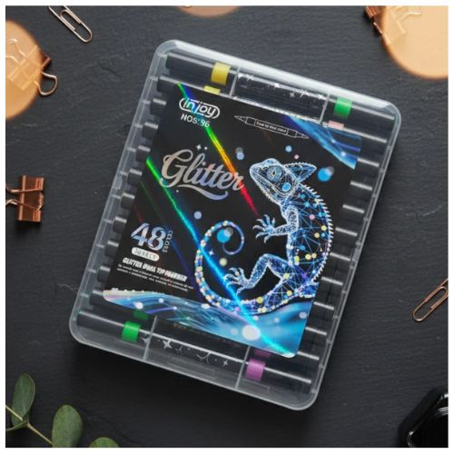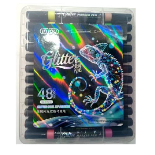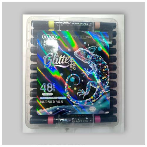 Kit Completo de 48 Colores: Incluye una gama de tonos vibrantes, todos con el toque de glitter característico para una organización escolar llena de luz.